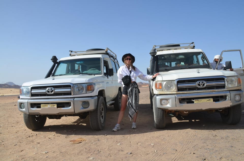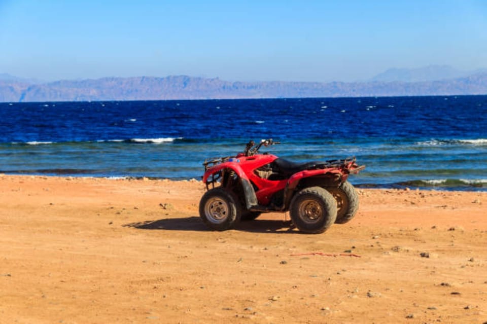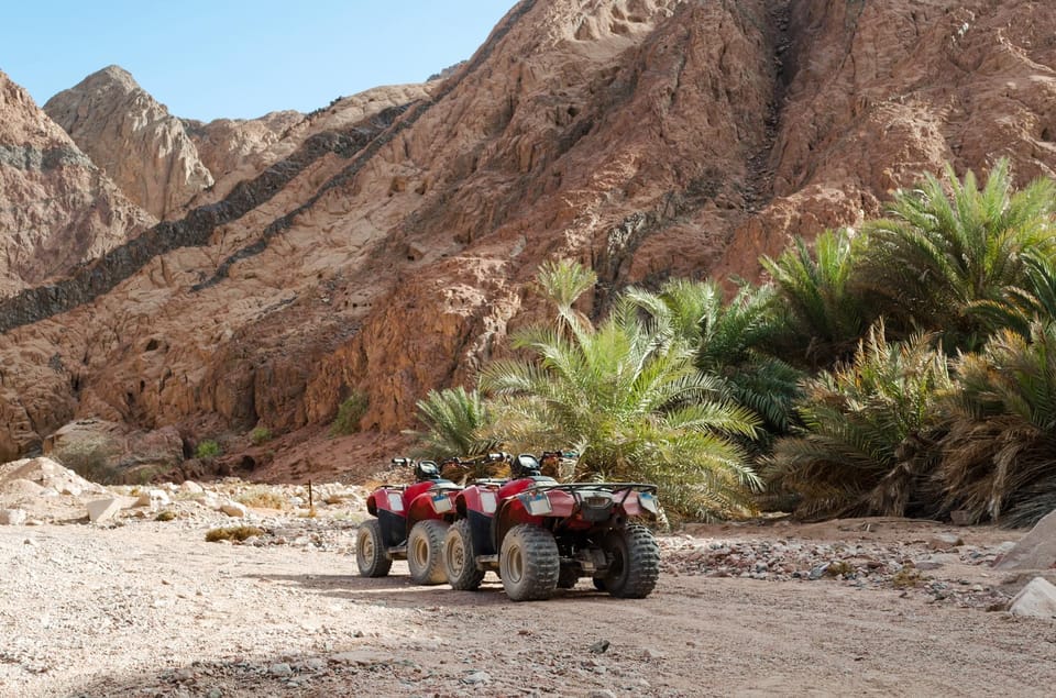 Come back to the beach camp and have your delicious barbeque lunch while watching the panoramic views of the sea and mountains. Take a sea breath, hop on a camel along the coast, and shoot remarkable photos. Move to the next adventure and ride a quad bike along the sea of Dahab. After boosting adrenaline with the camp activities get ready to start your next adventure. Travel by jeep to the famous Canyon. Explore a vibrant labyrinth of sandstone cliffs in shades of yellow, purple, red, and gold while walking through the 800-meter gorge. Take a Jeep ride and go to the shopping center near Dahab city before coming back to Sharm El Sheikh.